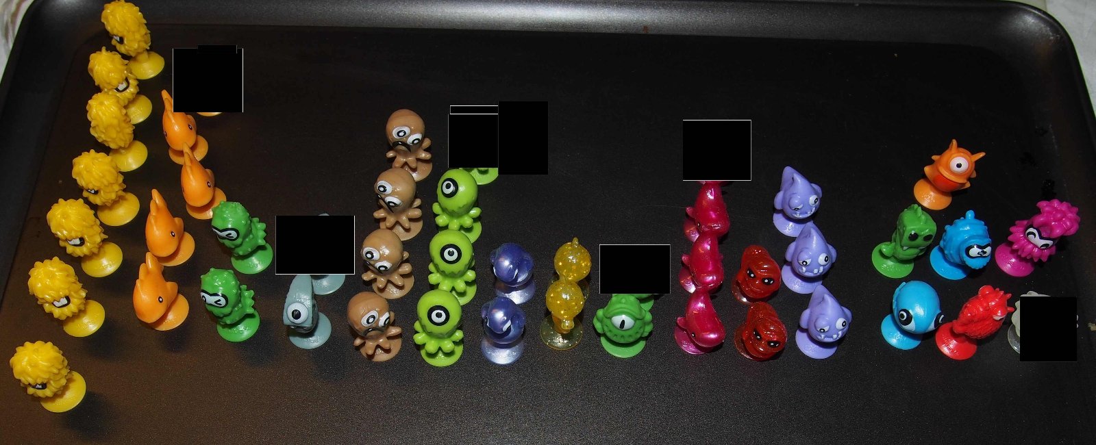 z prvej serie:Ely,Kittie,Gloo-Gloo, Moody,Cheez, Frankey,Frogy, Snaky,Cow, Puffy,Giry Joe, Fido,Papsy,Sharky,Guiny,Piggy,Orby,Loggy
