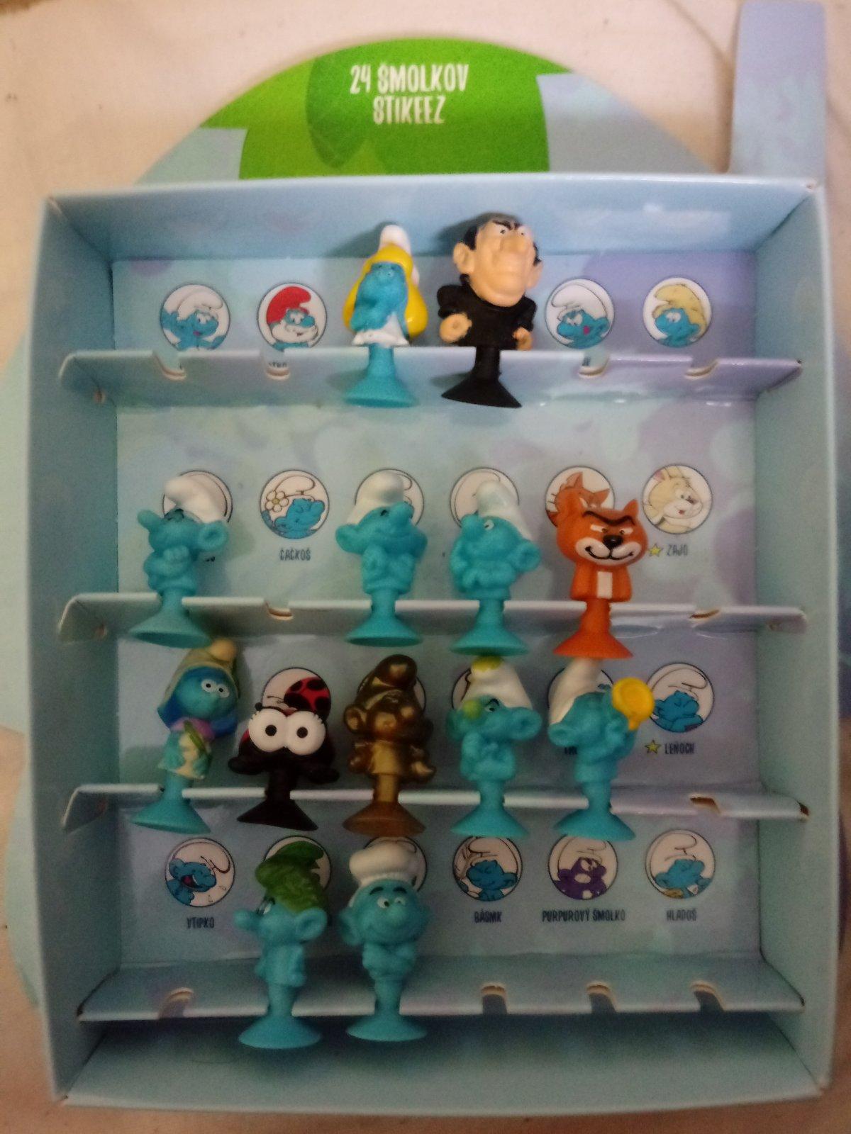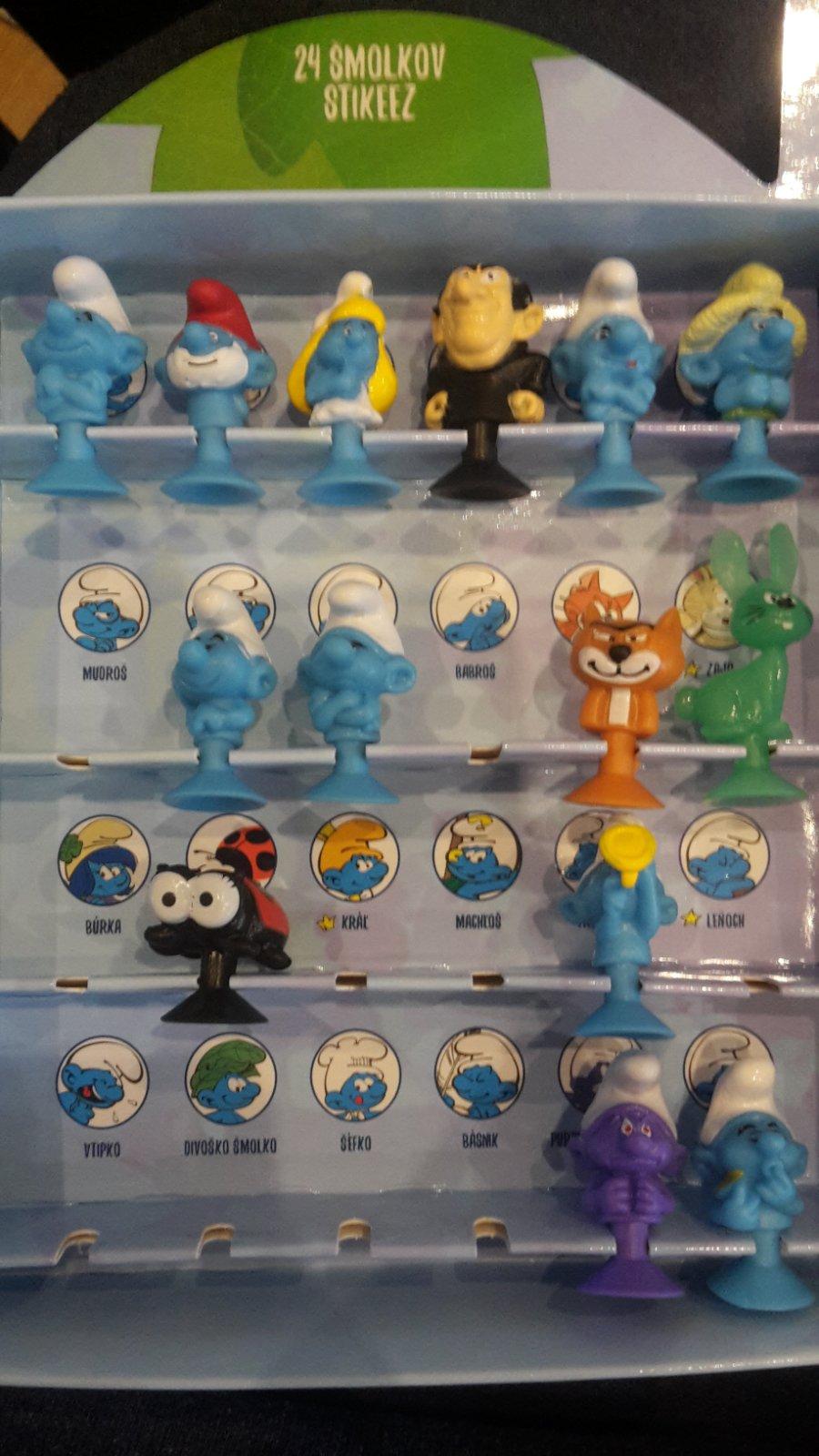 Chýba nám: Šmolko 2x, Tatko Šmolko 1x, Šmolinka 2x, Gargamel 2x, Farmár 2x, Mudroš 1x, Búrka 1x, Snappy 2x, Kráľ 2x, Leňoch 2x, Vtipko 2x, Básnik 2x, Purpurový Šmolko 1x.