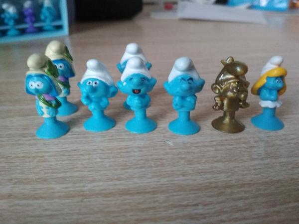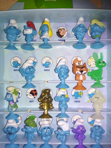 Ahojte máme v ponuke tatka Smolka,zaja, hundros, lenoch, trubkar, machlos, vtipko,hlados, gargamel a rada by som vymenila alebo kúpila tých čo nám chýbajú a to sú:Smolko,babros,búrka,kráľ, purpurový Smolko.dakujem