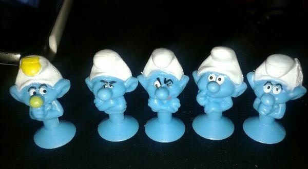 Máme na vymenu: purpuroveho, zaja, búrku, tatka šmolka, machloša, kuchára, básnika, farmára, vtipko, čačkoša, divoška, šmolinku.... Chýba nám: šmolko,gargamel, mudroš, babroš, azrael, snappy, kráľ, trubkar, leňoch, hundroš... Ďakujeme