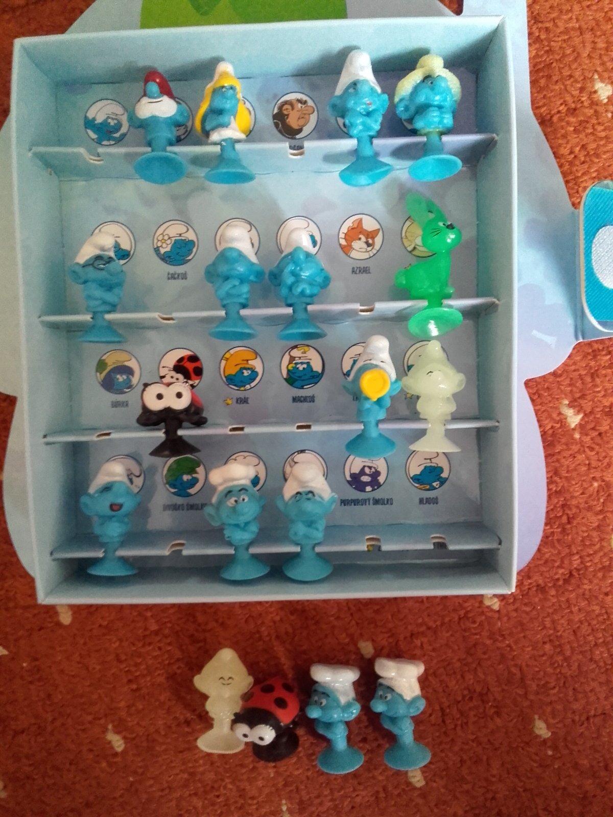máme na výmenu zajo, hundros, šmolinka,trubkar,básnik- potrebujeme: smolko, tatko šmolko, gargamel, silák, azrael,snappy,král, machloš,lenoch, divoško, purpurový, hladoš.