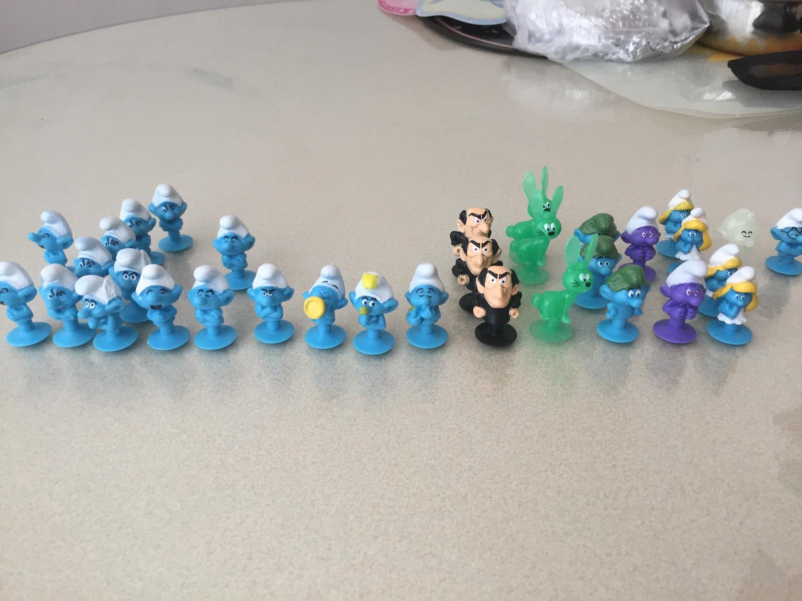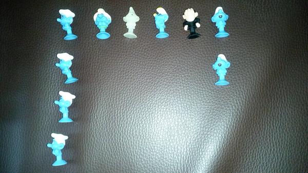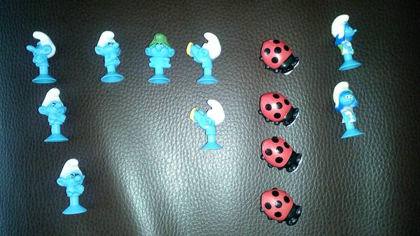 Chýbajú nám Šmolko, Zajo a Kráľ. Navyše máme: Hundroš, Silák, Búrka, Hladoš, Snappy, Machľoš 2x a Purpurový 2x.