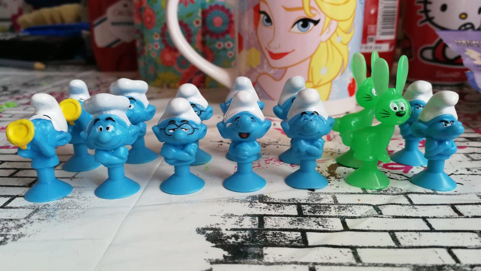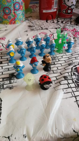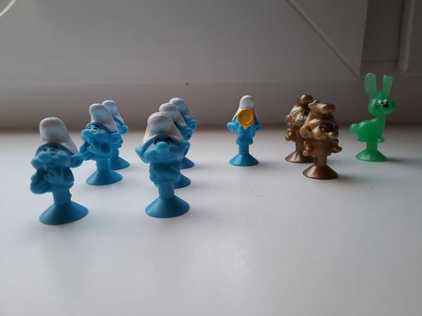 máme na výmenu 2x snapy, purpurový, trúbkar 2x, vtipko 2x, babroš. potrebovali by sme zaja, tatka šmolka, hladoša, šefka, machľoša, básnika a hundroša. Ešte by sme potrebovali aj album.