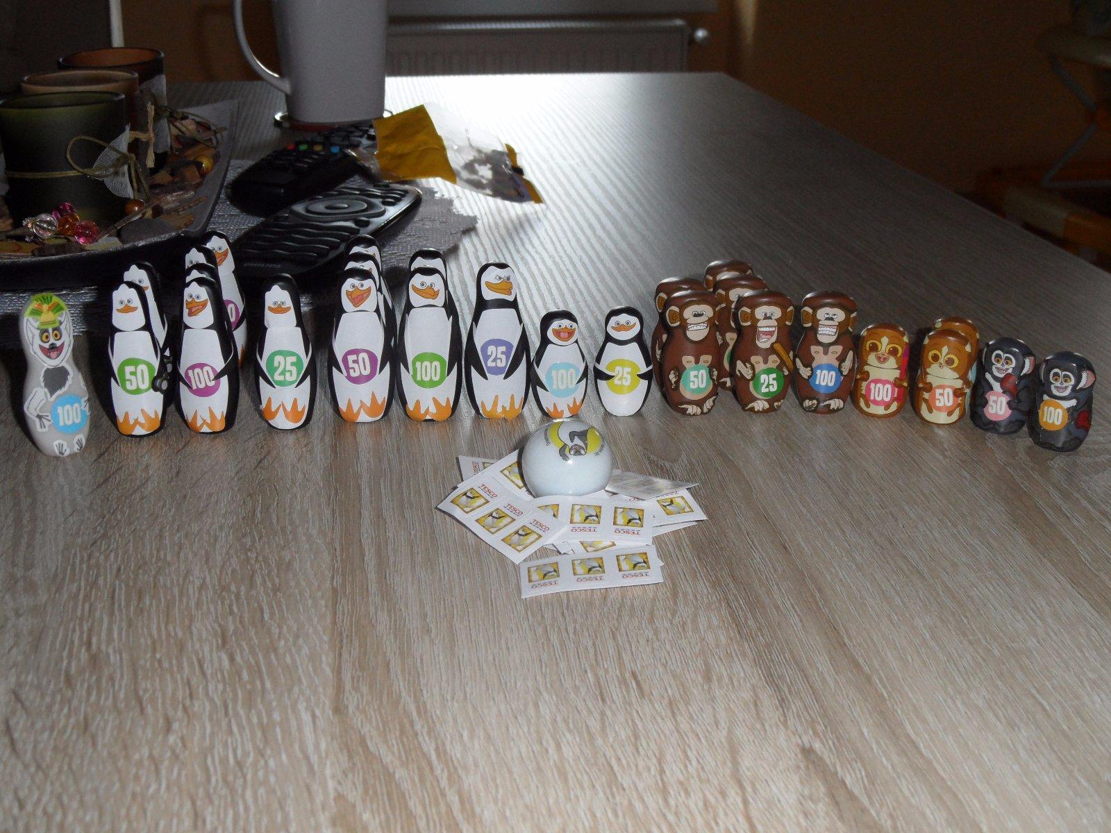 Mám 14 figúrok tučniakov a jednu guličku, rada by som ich vymenila za kufrík s domino kockami Šmolkovia ak ich máte doma a deti sa Vám s nimi už nehrajú.