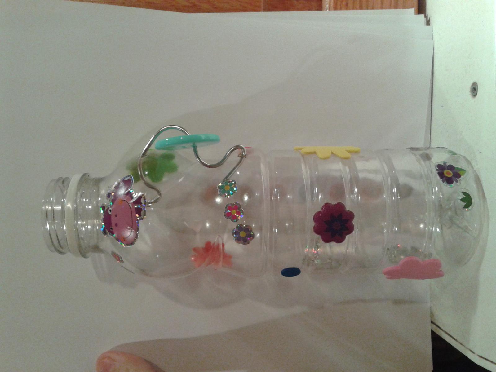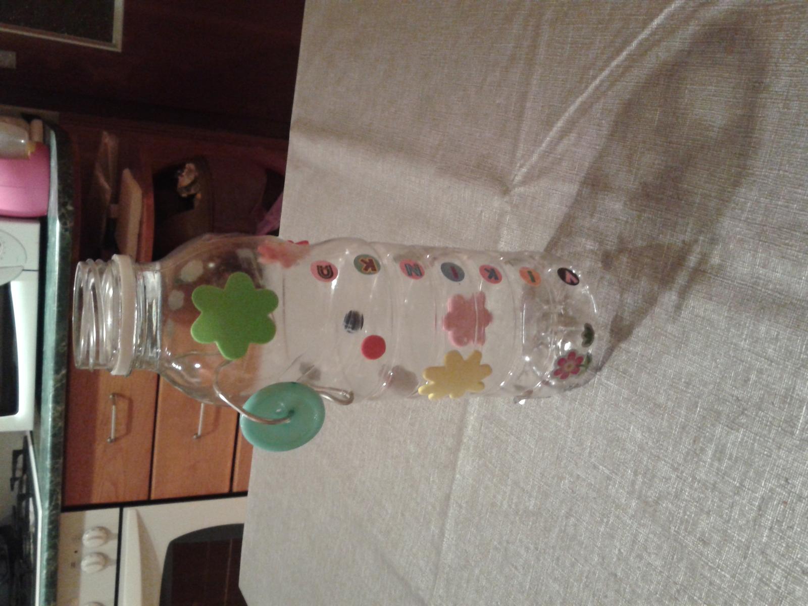 @miskanasa flasa vyzera super, mas dekorativny talent 😉 ale ked by si mala este dost drotikov tak my by sme uvitali radsej viac drotikov na strkanie dnu namiesto cerkatka a tolkych zdobidielok.. maly ked sa mu daco zapaci tak by strkal a strkal tak nech sa zahra...