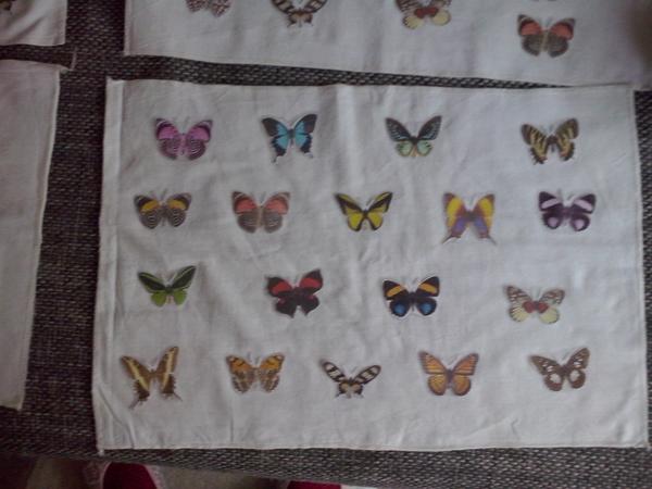 pripájam foto motýľov, práve som obšila látku ak teda všetky súhlasíte že to bude na látke, zatiaľ ešte nelepím najskôr sa vyjadrite je tam 18motýľov látka má rozmer cca 47 x 32 cm viac motýlov tam nechcem dávať aby to zas nebolo preplnené a pre detičky náročné...čo vy na to?