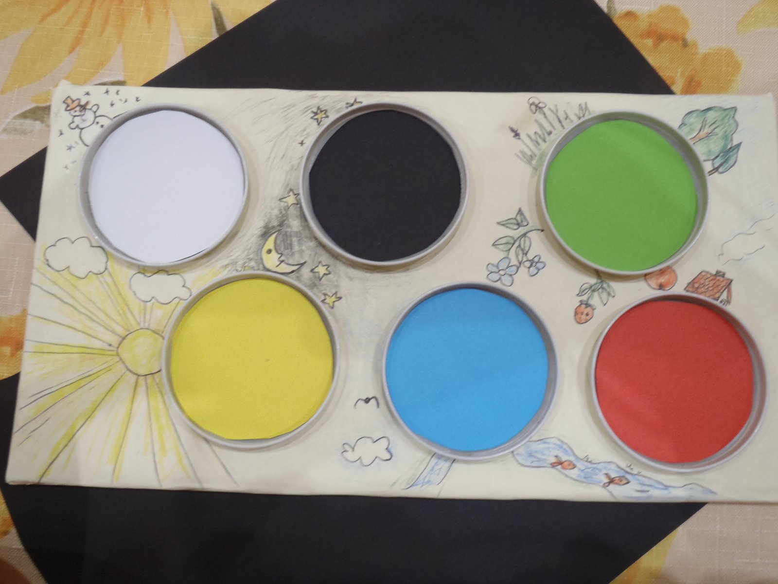 @janikes @llela @kajka18 @fada @mimamijami takze k triedeniu farieb - rozhodla som sa pre 6 farieb, moja otazka - chcete aj taketo jednoduche "ilustracie" alebo len cisty biely/svetlozlty podklad? A co sa tyka predmetov - rozdelila som farebne gulocky, vrchnaciky z pet flias, jeden - dva tvary z machovej gumy ku kazdej farbe. asi este dorobit zo dva tvary z gumy, co poviete?
