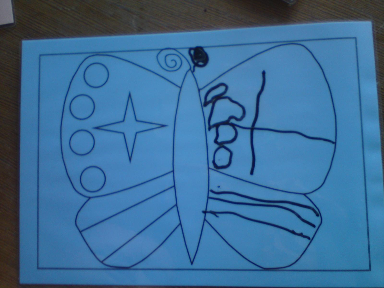 nase symetricke motyle - jemna motorika, pozornost, koordinacia oko - ruka, nazvy tvarov, pocitanie /pocet tvarov/..atd... neskor subezne kreslenie oboma rukami - synchornizacia hemisfer..... /prip. zatial pre maminku 🙂 /