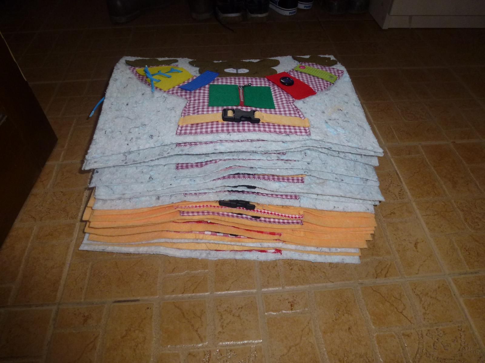 Dakujem vsetkym za pochopenie, koliky musim este pribuchat, uz su narezane, to je najmenej..len ten material na spodnu platnu na geo.tvary nemam..tam je hacik. A stopliky sa mi podarilo nazhanat cervene,modre,zelene,biele a zlte..snazila som sa take zakladne farby, nie daku zlatu z piva 😀 Asi aj vidite ze ten material nie je u niektorych ako z obchodu, no robit 21 hraciek je proste zaberacka sak sme na to prisli asi vsetky 😉