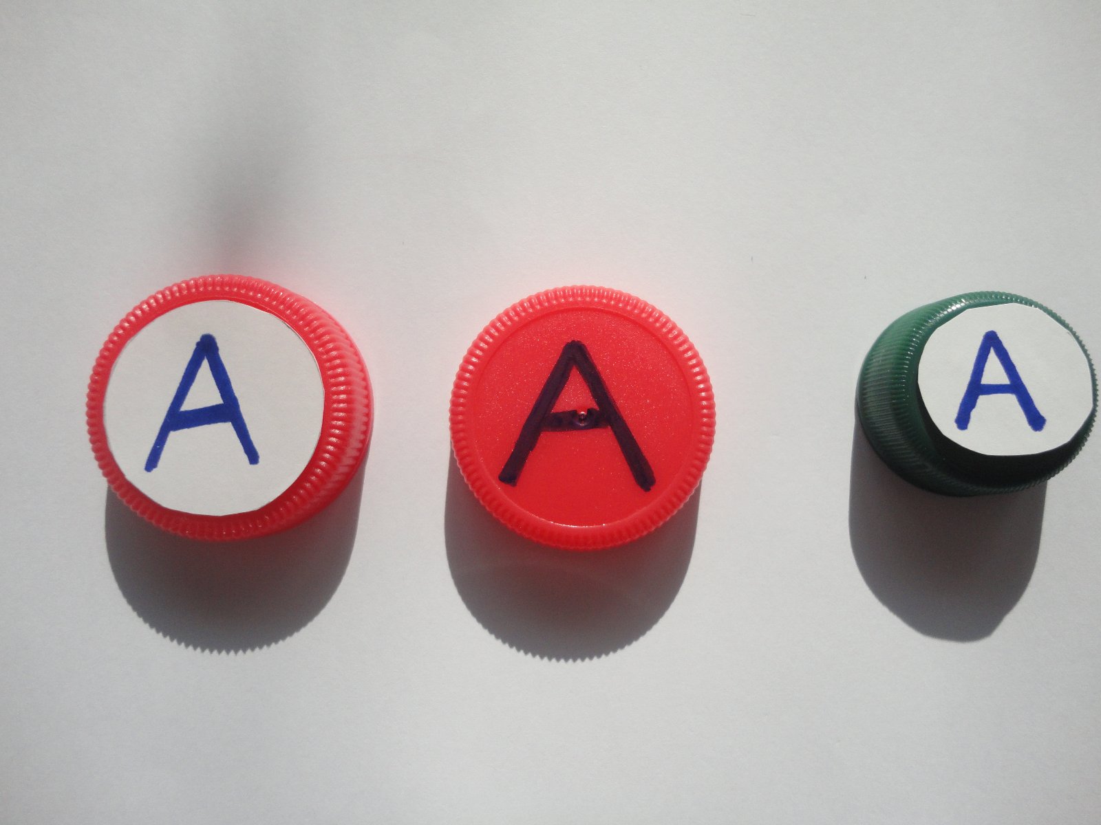 - obr. 2 stuple - pismenka su fixou napisane na stupliku alebo nalepene. Vyhodou moze byt, ze sa pismenka losuju a dieta hlada aj opacne nie len k obrazku pismenko ale aj vylosovane pismenko k obrazku.