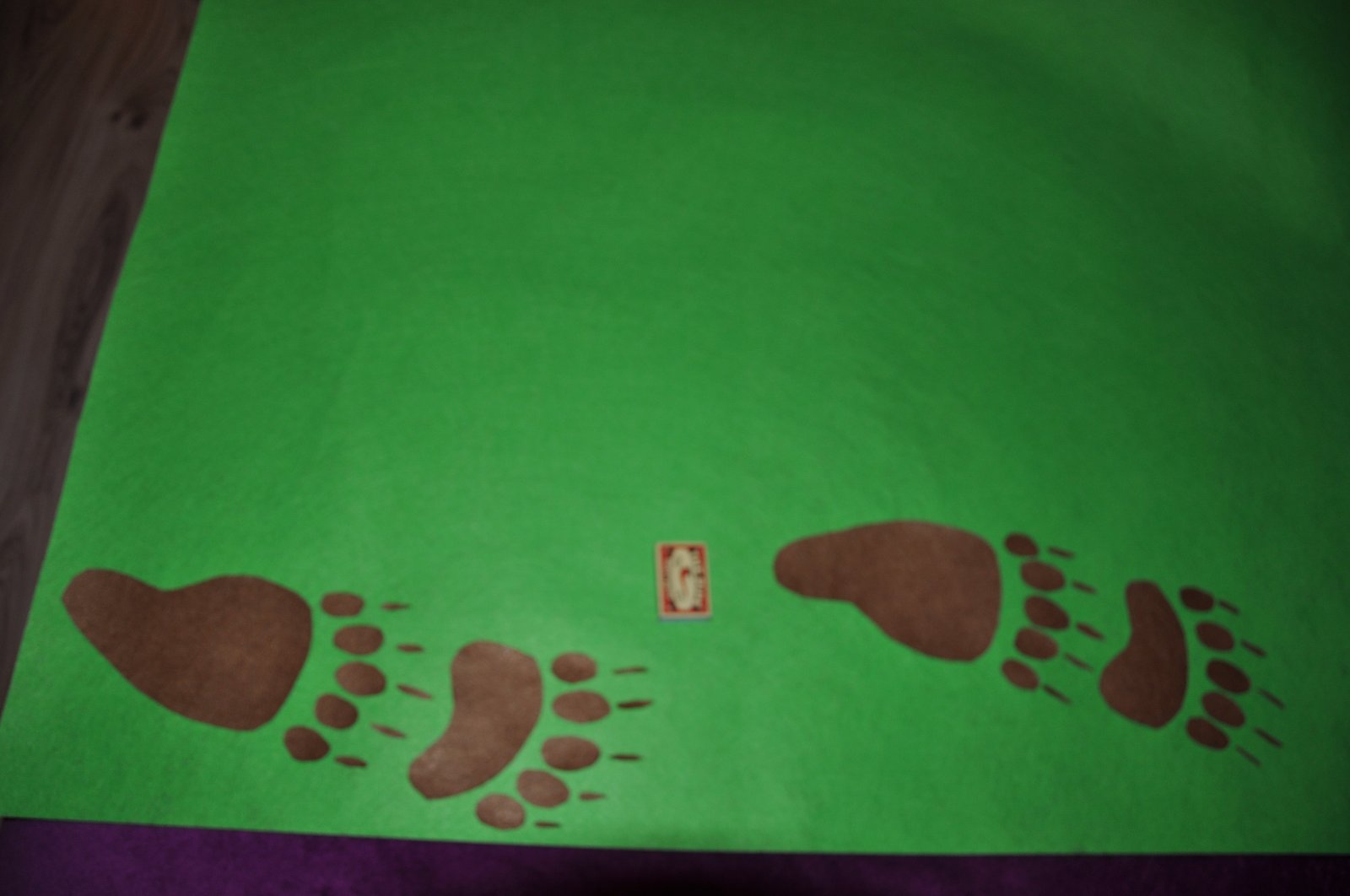 Ahojte baby...tak konečne som sa k tomu dostala.. Ochorelo mi aj druhé dieťa, takže až dnes sme sa dostali na nejaký nákup materiálu... narazila som na nejaké technické problémy... na začiatku bol plán kartón a filc.stopa..ale s adelajdou sme usúdili, že to nebude nič moc.. takže podklad nejaká látka... Lenže látku treba potom obšiť...a nemám šij.stroj, ručne by mi to trvalo večnosť... Takže som sa rozhodla pre filc aj ako podklad (zelenej farby)...Dosť sa mi to blbo ukladalo, keďže moje bambule skúšali ako chodí medveĎ 🙂 Prosím vyjadrite sa, či to môže byť , alebo či chcete radšej stopy zo špongie-čo navrhla adelajda...Je to stopa v životnej veľkosti ako kráča...