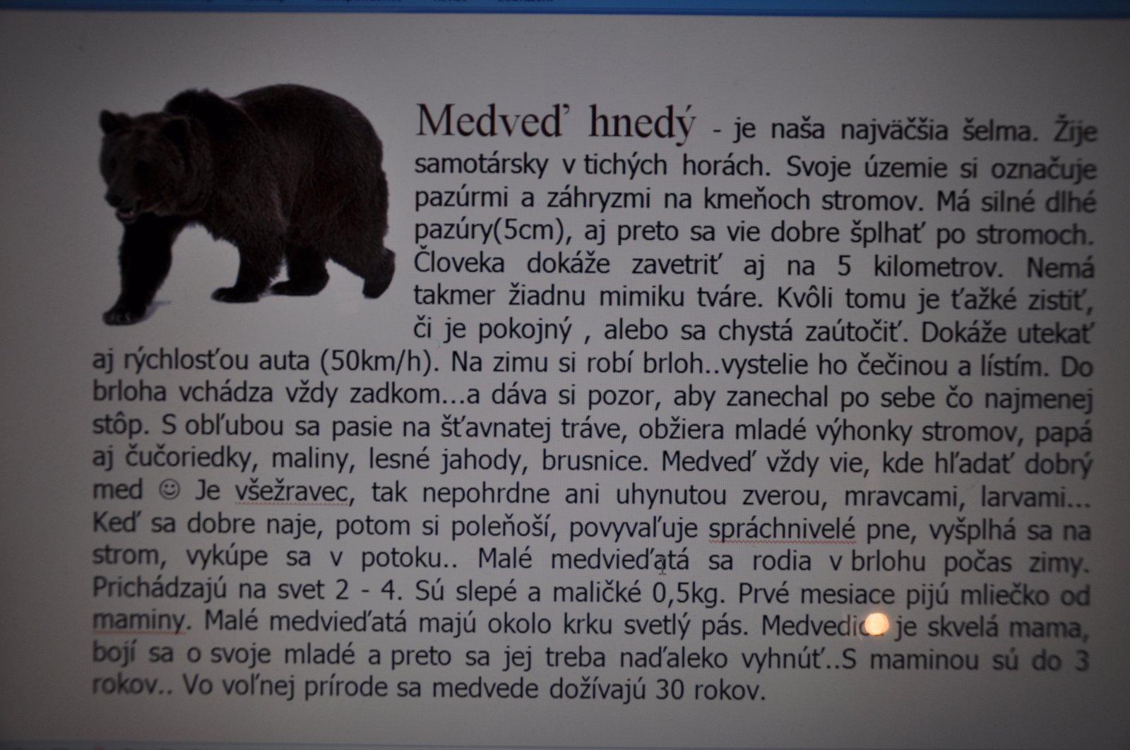 A ešte k tomu kartička.. Stopa je urobená z hnedého filcu... aj názov zvieraťa je v hnedej farbe na kartičke.. Mám dva varianty... Jeden je dosť pokecu (čo som pôvodne myslela, že nebude skoro žiadny...ale možno by ste chceli dačo povedať aj o zvieratku ) na jednej strane A4 a z druhej strany by boli obrázky k tomu pokecu...Akože snažila som sa aj vo fotošope...ale bez šance...nervy v kýbli ... Tak som to vo Worde robila...Dajte mi kludne pripomienky akéhokoľvek druhu...Ospravedlňujem sa za kvalitu fotiek, ale je to fotené z PC, keďze nemám ani tlačiareň...