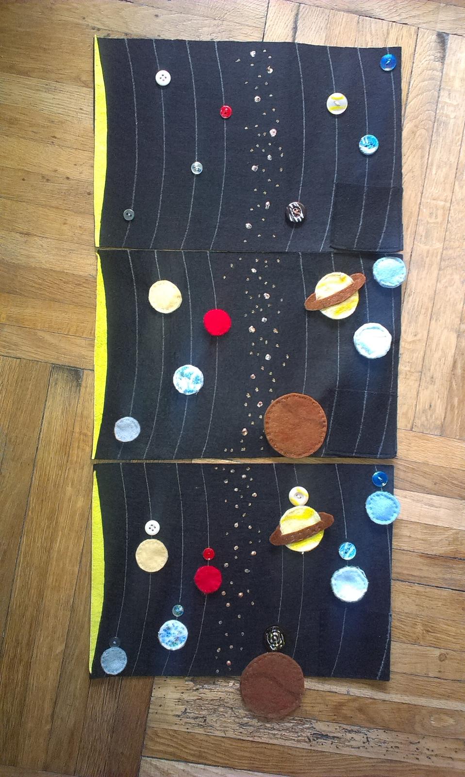 z jednej strany je 12 predloh, v strede je podlozka na skladanie, a na druhej su vystrihnute z filcu tvary na skladanie. su z tvrdeneho filcu, tak sa s tym super robi, mne sa to velmi paci 🙂