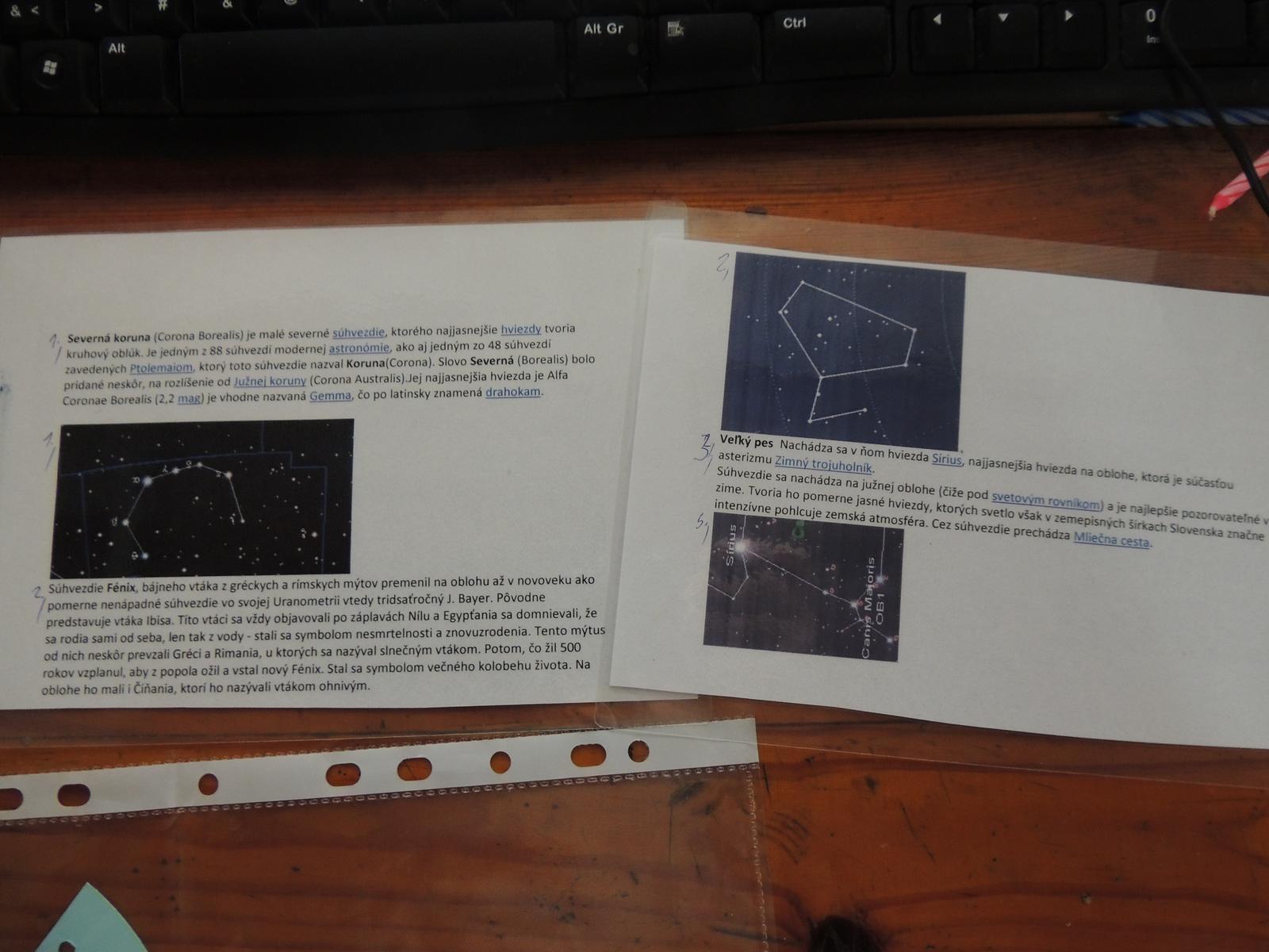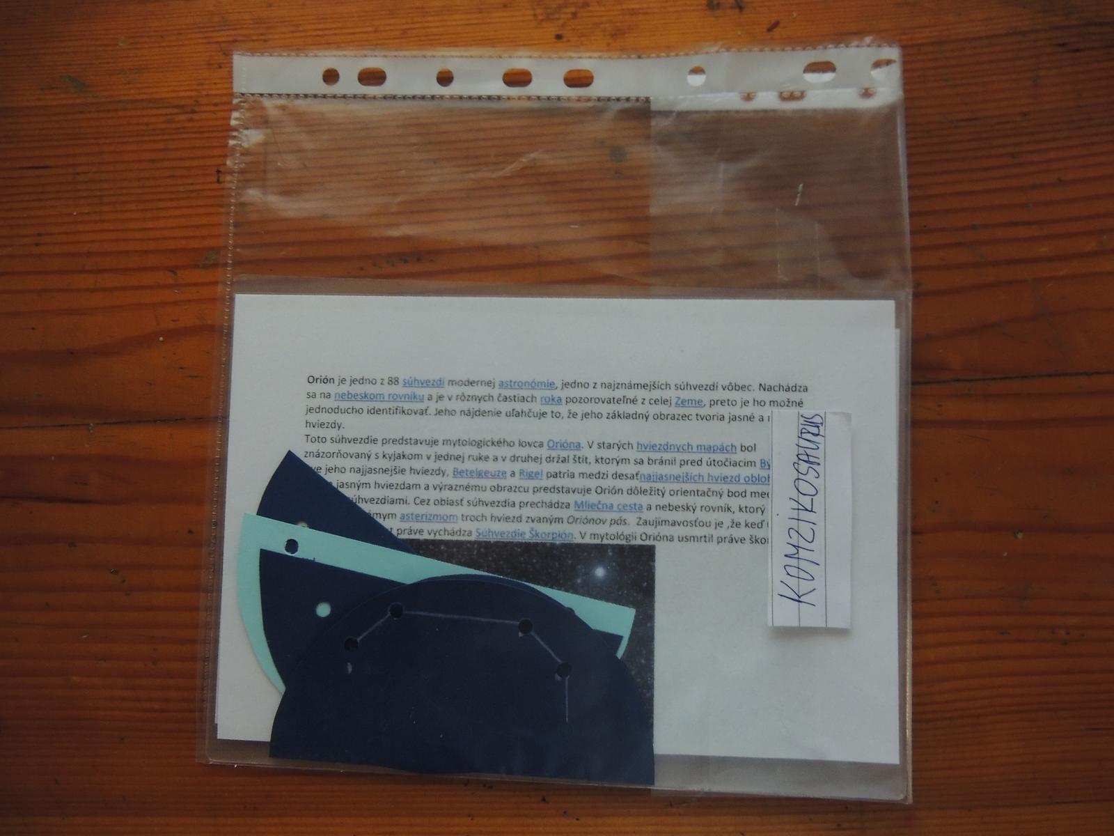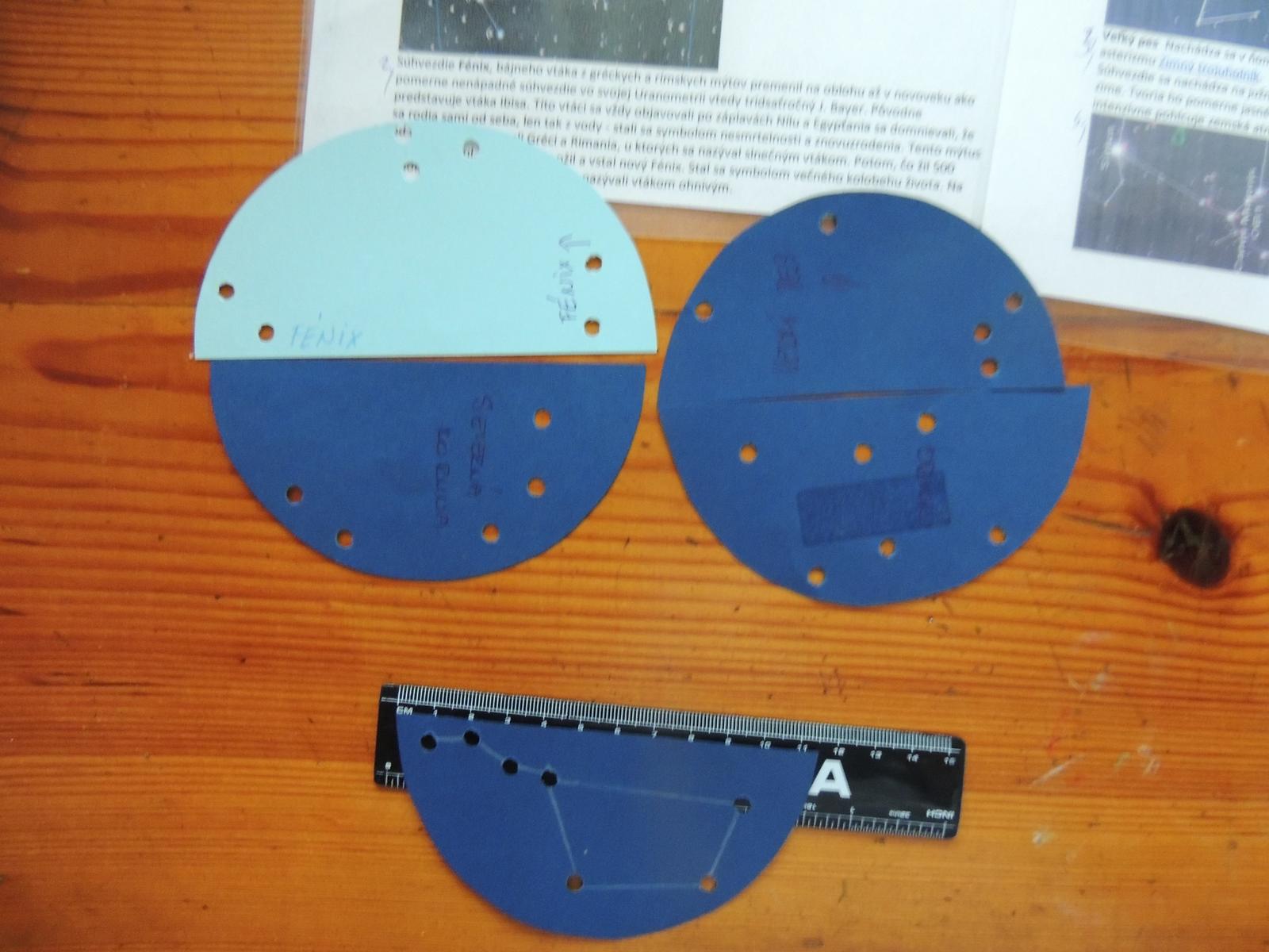 Mne sa tato aktivita nepaci, ukazem vam preco na fotkach.... keby to splnalo funkcnost, alebo aspon daku formu , aspon karticky ... Suhvezdia su pre nas dost nezname (az na voz a orion), ale viem ze ich vyberala , aby jej to preslo cez dierkovac. Je ich teda az 5 ks co je podla mna na papier dost malo a kazdy polkruh je iny rozmer... Popravde som nevedela asi ako nik ze Janka ma operaciu , tak mozno tym sa da ospravedlnit to odflaknutie (podla mna) ja by som do toho na jej mieste nesla , rozhodne by som neposlala takuto aktivitu(ale to je o limitach kazdej z nas) uz sa k tomu nechcem viac vyjadrovat.