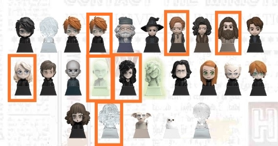 Ponúkam: 2x Ron, 2x George, 2x Fred, 2x Neville, 2x Cedric, Remus Lupin, Voldemort, Bellatrix, Luna, neviditeľný Harry