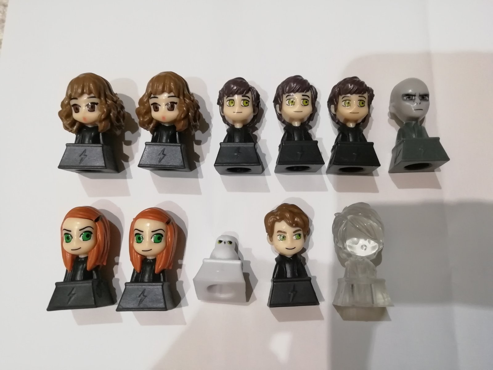 Máme naviac: 2 neviditeľný Harry Potter, 3 Hermiona, 10 Neville Longbottom 2x, 11 Ginny Weasleyova, 15 Hedviga, 22 Lord Voldemort 2x a 23 v tme svietiaci lord Voldemort, Hagrid a 25 Cedric