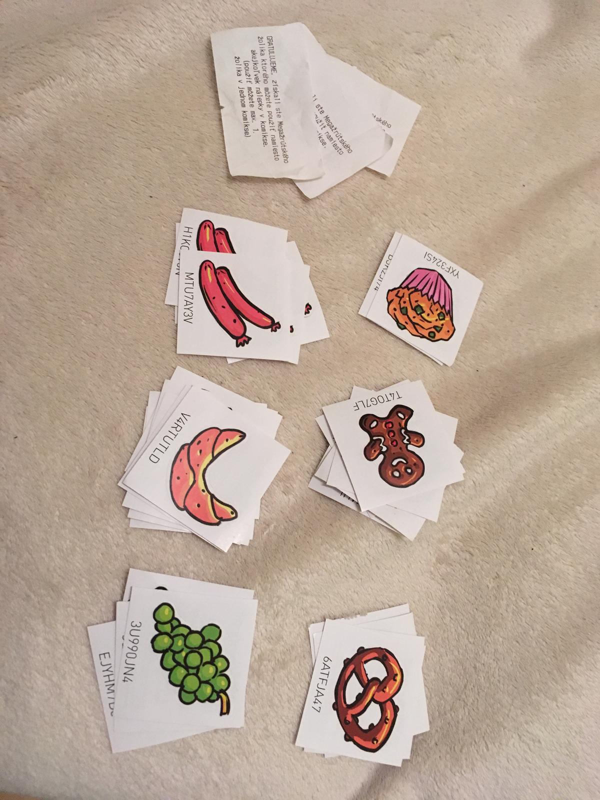 Ahoj! Mam maffin ,hrozno, volské oko a potrebujem perník ,rožok , praclík a vodu.. tri určite mam žolíka 🙂