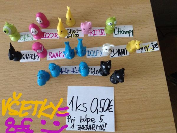 Ahojte. Som z Nitry. Potrebujem Puffy, Kitty a Snaky a mám na výmenu Igor, Moody, Cow, Cheez, Frankey, Orby. Najradšej by som vymenila s niekým priamo z Nitry, poprípade kto má všetky moje 3 chýbajúce figúrky aj na výmenu cez poštu. Ďakujem!