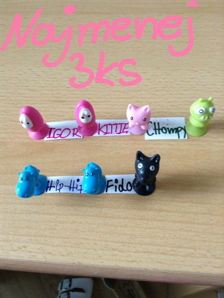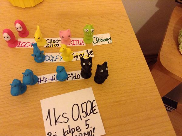 ahojte potrebujeme puff puff (ružové strašidlo s 1 okom), orby (zelené strašidlo s 1 okom) a bunny (biely zajko) máme na výmenu, napíšte aké chýbajú vám 🙂
