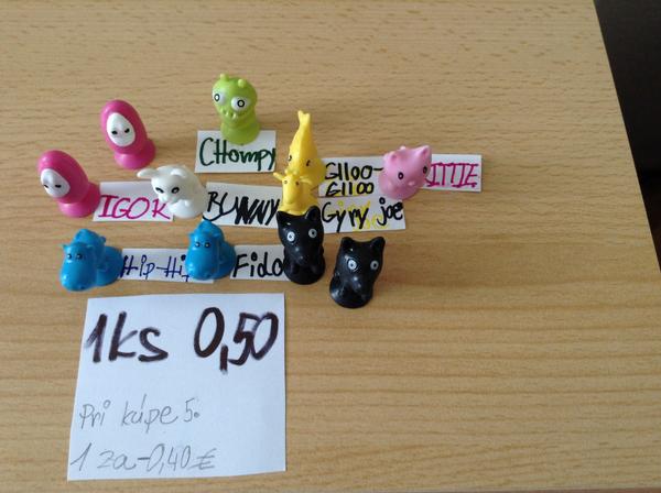 Ahojte, mam na vymenu gloo-gloo, hip-hip, guinny, fido, orby, bunny, froggy, piggy, cow, dolfy, chezz, sharky a potrebujem puffy, puff-puff, ely a igor.