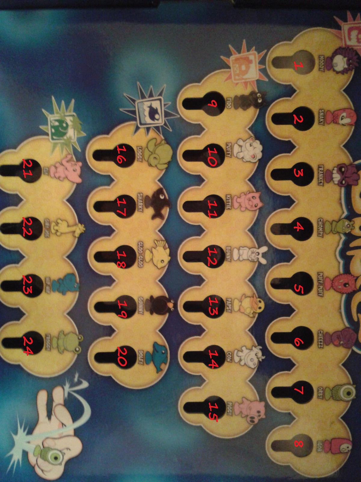 PRIEVIDZA potrebujeme prvé dve príšerky, psíka a korytnačku... na výmenu máme hrošíkov a tú posledná ružovú príšerku v riadku...