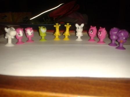 aj ja mam 10 stikeez ale mam 2-krat to iste takze mam vlastne 8. rybku,zabu,prasa,ovcu,zirafu,korytnacku 2 krat,takeho 1 okeho 2 krat a 1 priserku chompy to je vsetko :(