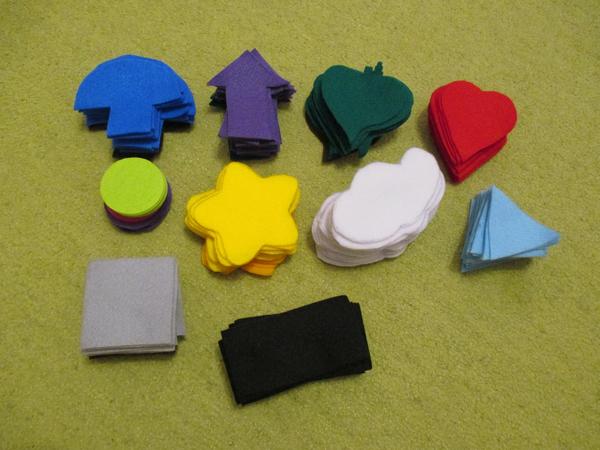 mam vystrihnute vsetky tvary (10 kusov). Vitazne tvary su: hrib, sipka, list, srdce, kruh, hviezdicka alebo kvet (ako uznate za vhodne:D ), oblak, trojuholnik, stvorec a obdlznik. Tvary su vacsie aj mensie, aby to mali drobci zabavnejsie pri navliekani.. 🙂