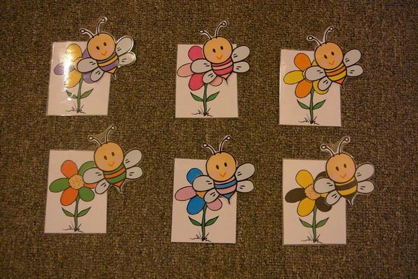 3. moznost farebneho triedenia aj takto nejak ako je na tretom obrazku - vcielky a kvety, ale jednoduchsie- opat by som sla do zakladnych farieb, ako prve zrakovo vnima dietko zakladne farby, tak by som ostala pri nich.......