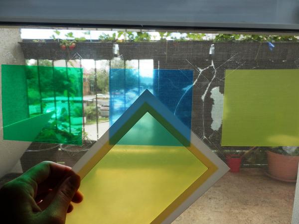 -starsim prilepit na okno foliove stvorce, z 8 karticiek si vyzrebuju aku farbu maju priamo na okne namiesat, a folie v ramikoch budu prikladat na tie stvorce ako na fotkach a budu skusat trafit.