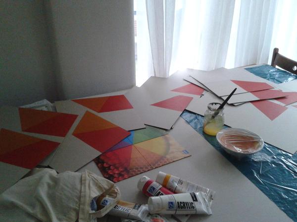 Baby, davam motivacne foto. Vyroba duhy je v plnom prude. Celu hru robim z pevneho 3 mm kartonu( aj hraci plan aj žetony). Potrebovala by som vediet ci je pre niekoho problem mst hraci plan nezlozeny. Rozmer je 35x35 cm. Lebo ked som skusala ho predrezat rezacom a zohnut, nrpaci sa mi ta hrana. . Pride mi to lahko znicitelne. Vidiet to na fotke. Ak niekto trvate na prelozeni napolovicu, fajte vediet.