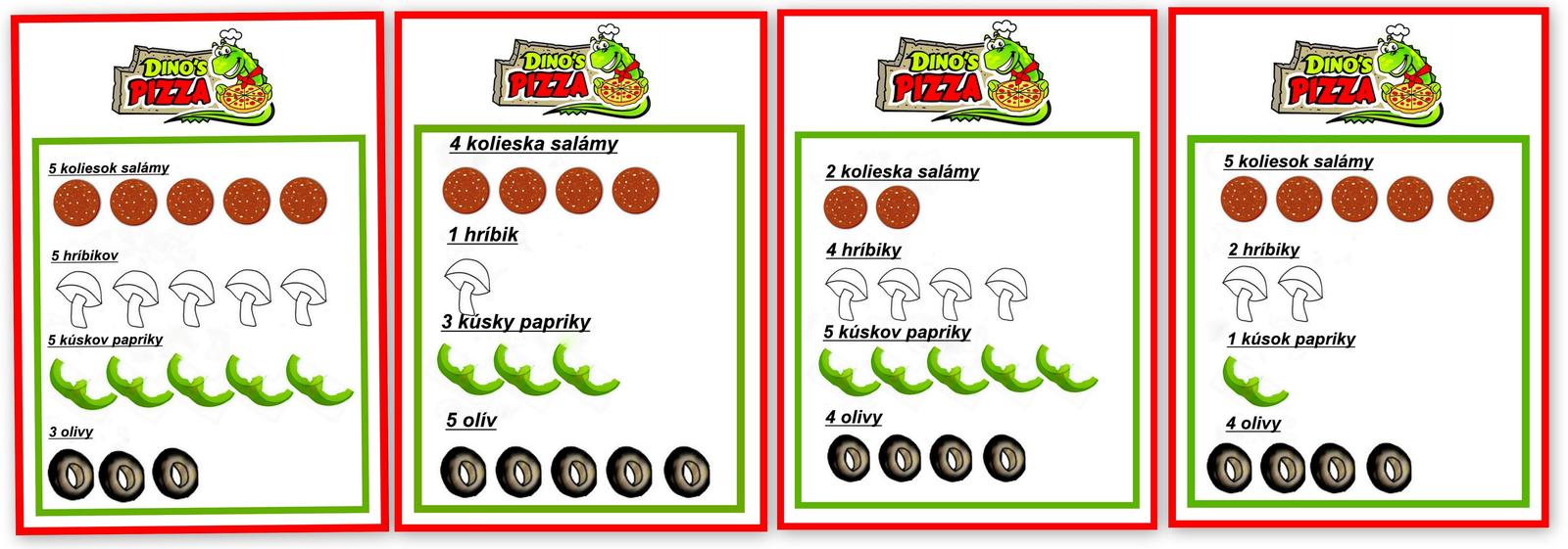 Kocky, takze vzhladom na priblizny rozpocet na aktivitu 1-2 eura, ktory sa aj mne zda prijatelny, musim ustupit od "bonusovych ingrediencii" na pizzu, aj ked som vam to slubila a velmi som sa na to tesila ☹ Filc len na tie zakladne co su na kartickach bude okolo 25€ + farebna tlac a laminovanie 20x A4. Co sa tyka pracnosti, budem prekreslovat a strihat 20x cesto, 20x paradajakovu omacku, 100x salamu, 100x hribik, 100x papriku, 100x olivy + nejako vymyslim ten syr. Ale ak sa to vam a drobcom bude pacit a prejde nam to druhe kolo, kludne si potom ako aktivitu zoberiem nejaku "nadstavbu" k pizze (ostatne ingrediencie, ine karticky s receptami, alebo prirobim ingrediencie na kolacik z toho isteho cesta, mozno nejake to prestieranie s priborom), Je to na dohode, len teda definitivne upresnujem zlozenie aktivity "PIZZA" a idem si objednat material.