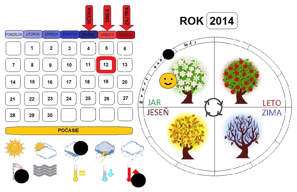 Baby, tak ja pridavam tiez prvy prototyp. Konecne sa mi podarilo nechat dcerku manzelovi 🙂. Format je A4. Graficky to treba este dotiahnut. Je to hlavne na pripomienkovanie. Tie sipky VCERA, DNES, ZAJTRA budu magneticke (magneticky papier). Takisto ten ramik na "dnesny den". Smajik a tie cierne kruzky su magnetky. Zalaminovane to bude v hrubsej folii. Este rozmyslam ako urobit tie cisla na jednotlive dni. Ci bud kazde cislo zvlast a budete si ich kazdy mesiac posuvat (boli by zalaminovane a podlepene magnetickou paskou), alebo radsej vytlacit a zalaminovat 12 mesiacov. Len to by sa dalo pouzit iba tento rok...to by asi bola skoda. Mate nejaky dalsi napad?