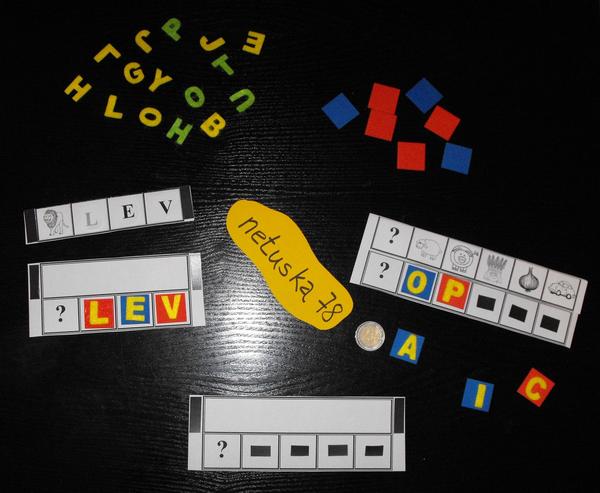 3. navrh: zatial len prototyp vo vyrobe pre moju dcerku ... tri zalaminovane karty na ukladanie pismenok (troj, stvor a pat pismenkove slova) abeceda stvorceky penovej hmoty a na nich pritkom tekutym zalepene filcove pismenka, podlepene kuskom magnetickej pasky, aby sa to nesmykalo...karticky s "tajnym kodom" pod kazdy obrazok treba ulozit zaciatocne pismeno veci co je na obrazku....vznikne slovo, na druhej strane je to slovo plus obrazok... co moze sluzit na kontrolu....ale aj pre ukladanie pismenok priamo k obrazku pre mensie deti....pripadne sa da karticka pouzit aj na stipcovanie, ak ma niekto urobenu abecedu na stipcoch... este som celkom neodhadla pocet slov...chcela by som vytvorit viac...mozno nie vsetky uz budem schopna zalaminovat....neviem celkom odhadnut naklady....ani nemam nejako velke mnozstvo tych pismenok filcovych, ak bude zaujem...budem sa musiet poobzerat po nejakych, pripadne aj z machovej gumy mozu byt pouzite...ci filc ci guma, je to fajn na hmat...tym ze je to na tom stvorceku z machovej gumy a podlepene kuskom magnetickej gumy, dobre sa s tym manipuluje a je to lahucke a spratne....inak pismenka su pouzitelne aj len tak samostatne na chladnicke, na plechu 🙂 ....no a este hutam nad priradovackou velke male pismena ... a este riesim v hlave vybrat slova v ktorych sa pismenka neopakuju...lebo potom sa tazko podari aby boli rovnakofarebne tie pismenka... no hovorim, teda pisem 🙂 zatial je to len taky prototyp a este neviem co sa z toho nakoniec vykluje 🙂 ta dvojeurovka je len na predstavu o aku velkost stvorcekov, pismenok sa jedna 🙂