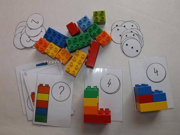 ide o skladanie lega podľa predloh (ľahšie aj ťažšie predlohy), určovanie počtu (buď počtom bodiek alebo číslicou) a samozrejme farieb,....