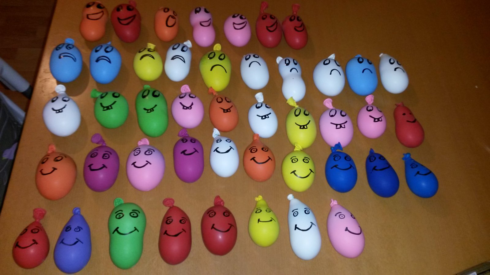 tak u nas to zatial vyzera takto. Este tam chyba 15 kuskov, cize v kazdom balicku budu 3 plastelinaci 🙂 Dufam, ze to prezije aspon chvilu. Keby nie, tak len vyvlecte z balonika a plastelina je klasicka, doma varena 🙂 pouzila som tento recept- http://www.instructables.com/id/How-to-Make-Pla...