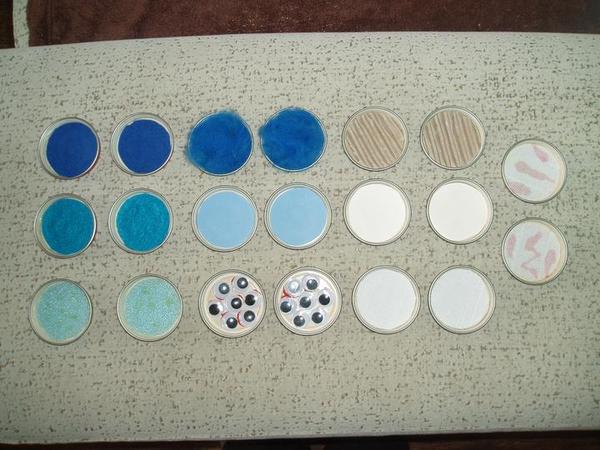 -hmatove pexeso (rozny material. napr. latka, filc, pena, runo, machova guma, oci, lepenka, obyc.papier, suchy zips, guma do nohavic) (nasla som tu na modrom koniku)