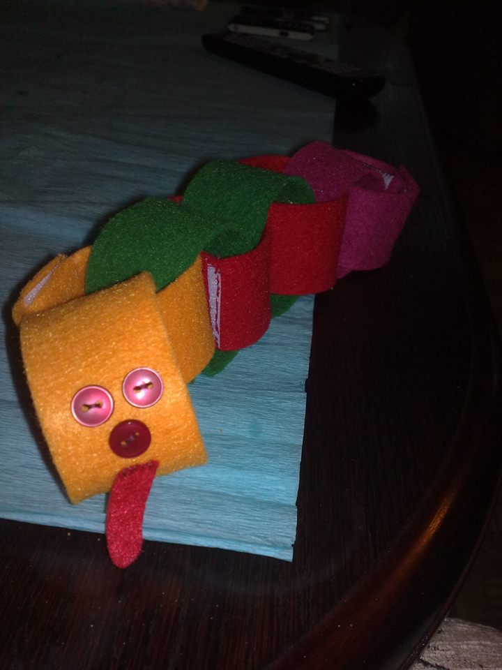 - kocka z filcu,ktora hrka, na kazdej strane je nieco vtacik,slniecko,sova, hviezdicka,zabka