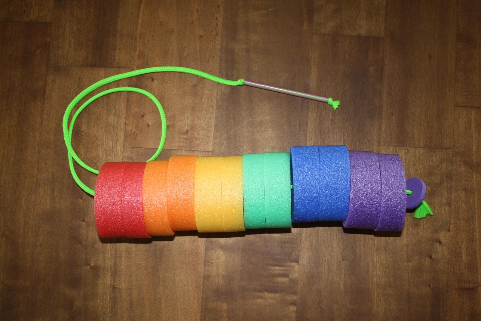 Takže takto nejako by to vyzeralo. Keďže je šnúrka mäkká, tak som chcela ten začiatok nejako spevniť, aby sa deťom ľahšie navliekalo. Keď ste si všimli, aj navliekačky z obchodu majú vždy na navliekacej šnúrke takú drevenú paličku akože ihlu. Nevedela som to vyriešiť, ale potom ma napadlo urobiť to tak, že som odstrihla zo slamky a tú tam navliekla. Dcérka má 14 mes. a slamky v pohode v ručičke drží, tak by to malo byť OK, ale ak sa vám to nepozdáva, tak som samozrejme prístupná návrhom na vylepšenie. Na druhý koniec šnúrky som dala také malé penové koliesko akože stoper, aby sa korálky nevyvliekali 🙂