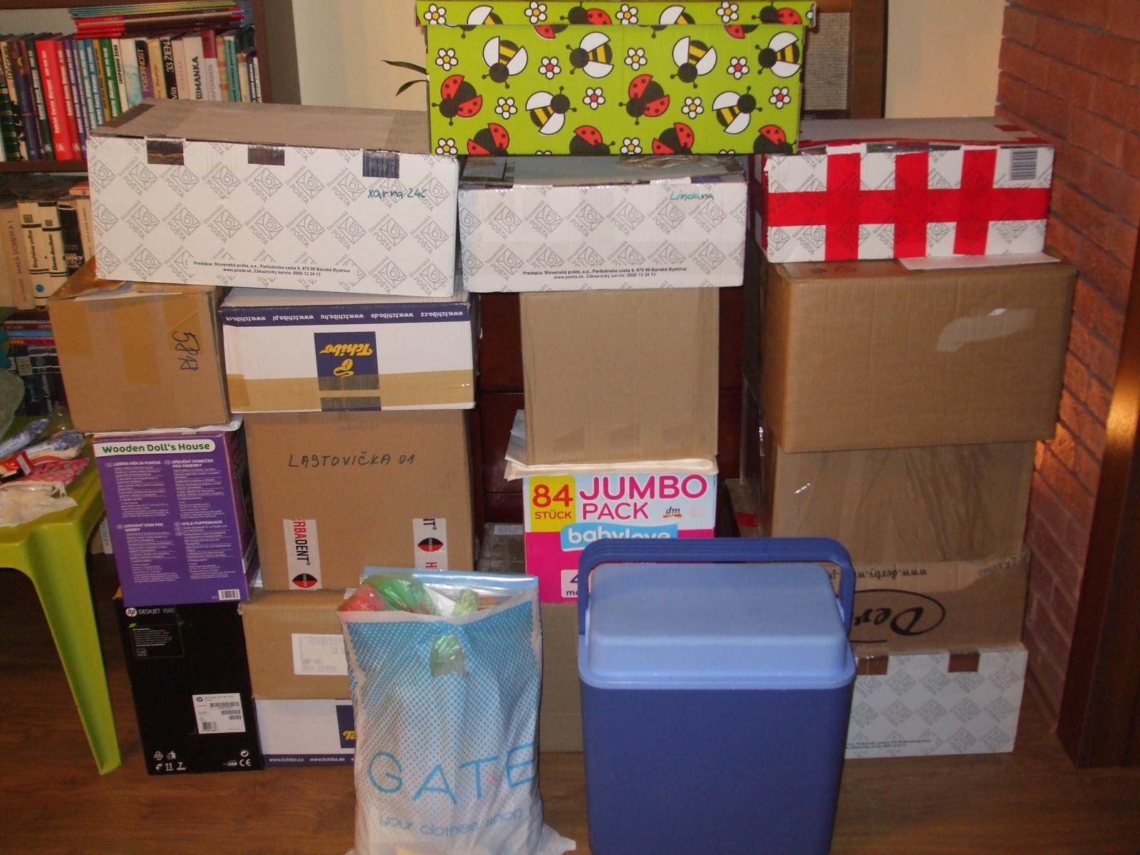 tak je potriedené, rozdelené a čo to aj pobalené, ale keďže som každú chvíľu budila drobca zvukom lepiacej pásky, niekoľko balíkov mi bude ešte treba zabaliť ráno, ale dobrá správa je, zajtra cestujú smerom k vám 🙂