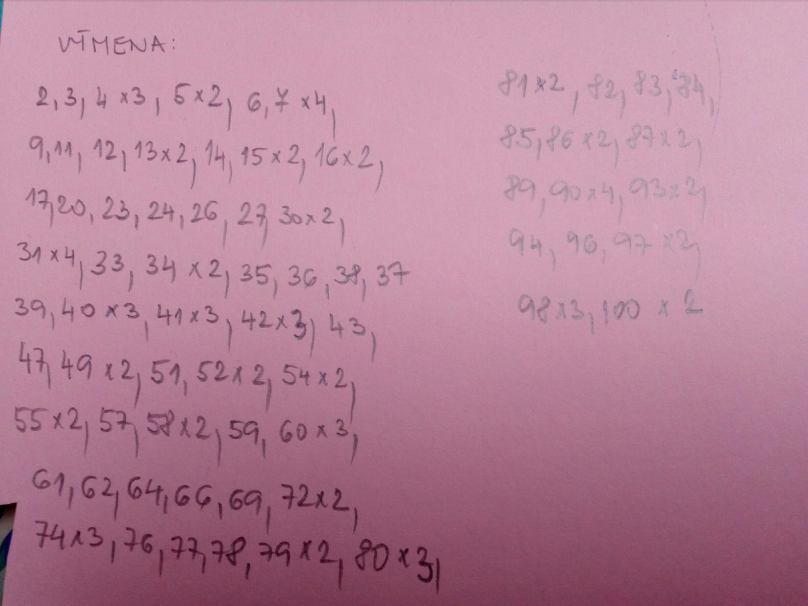 81,82,83,84,85,87,88,89,90,92,94,95,96,98,100.