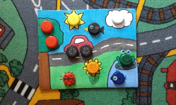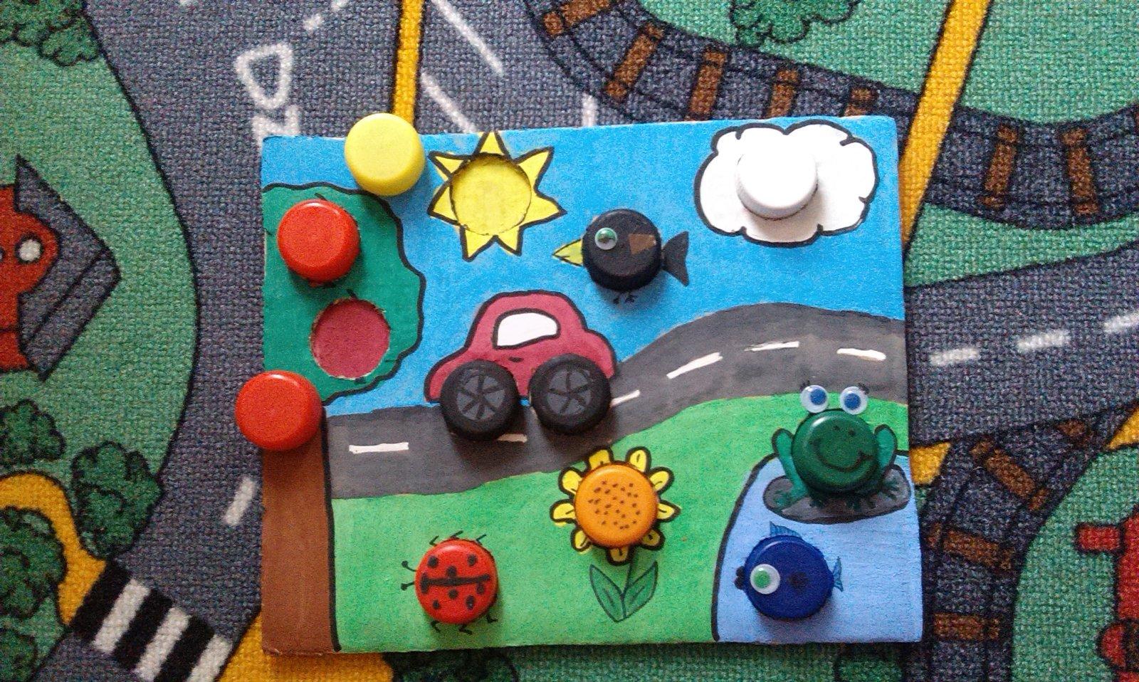 Baby mimo nasej skupinky - ale mozno pre vasu inspiraciu. Tak takyto obrazok som robila v inej vymennej skupinke az 13ks. Priradovanie farieb vrchnakov do spravnych otvorov. Mam to doma a pri starsom to vyuzivam aj napr. ze pytam sa kde co je to ukaze a snazi sa pomenovat veci.