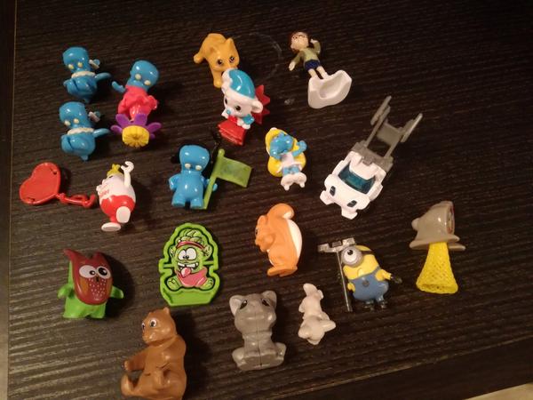 Uz pevnych par rokov nas drzi zbieranie figuriek z Kindervajicok. Poslednu dobu je to strasne. Kedze si vyberam tie tazsie vajicka, nejako sa nam namnozili niektore postavicky, napr. zo serie Atronautov mame asi 3 korytnacky, 3 medvedov a ziadneho papagaja. Zo starsej serie Natoon mame napr. troch hrochov. Ma zaujem niekto povymienat?