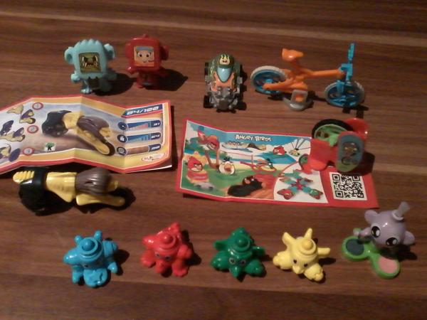 Uz pevnych par rokov nas drzi zbieranie figuriek z Kindervajicok. Poslednu dobu je to strasne. Kedze si vyberam tie tazsie vajicka, nejako sa nam namnozili niektore postavicky, napr. zo serie Atronautov mame asi 3 korytnacky, 3 medvedov a ziadneho papagaja. Zo starsej serie Natoon mame napr. troch hrochov. Ma zaujem niekto povymienat?