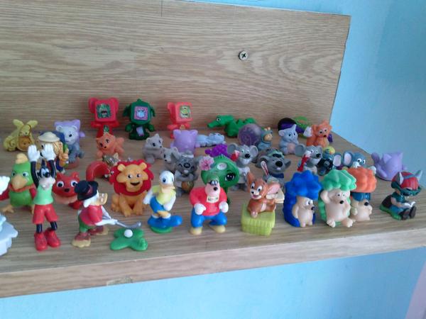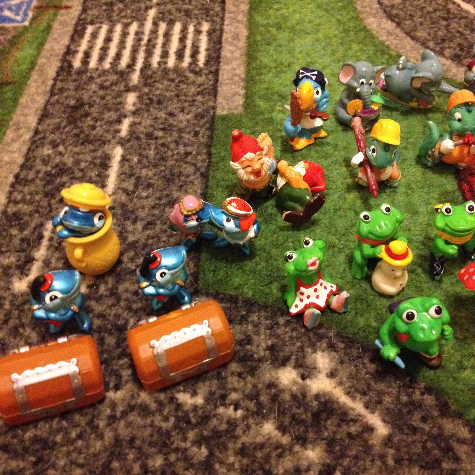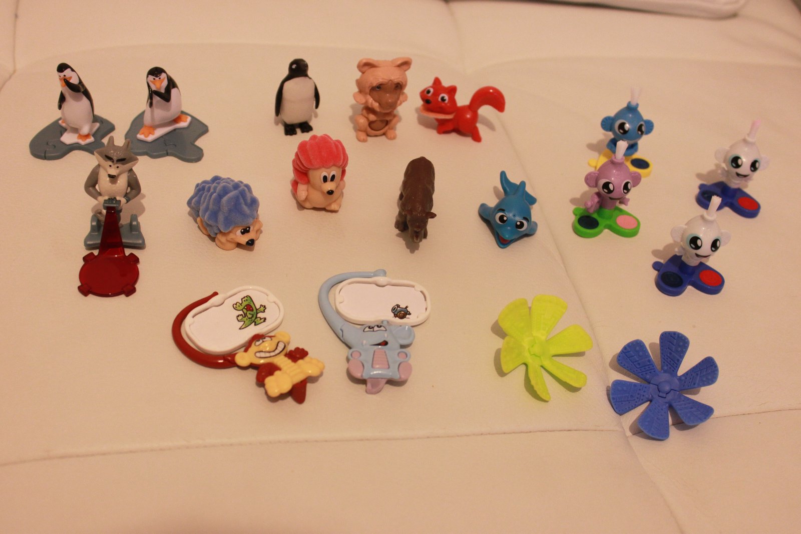Uz pevnych par rokov nas drzi zbieranie figuriek z Kindervajicok. Poslednu dobu je to strasne. Kedze si vyberam tie tazsie vajicka, nejako sa nam namnozili niektore postavicky, napr. zo serie Atronautov mame asi 3 korytnacky, 3 medvedov a ziadneho papagaja. Zo starsej serie Natoon mame napr. troch hrochov. Ma zaujem niekto povymienat?