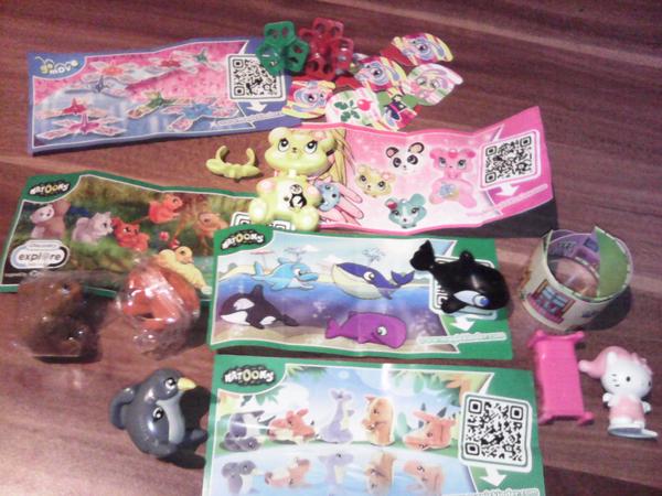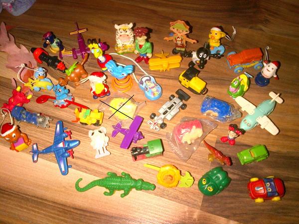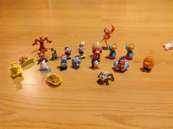 Uz pevnych par rokov nas drzi zbieranie figuriek z Kindervajicok. Poslednu dobu je to strasne. Kedze si vyberam tie tazsie vajicka, nejako sa nam namnozili niektore postavicky, napr. zo serie Atronautov mame asi 3 korytnacky, 3 medvedov a ziadneho papagaja. Zo starsej serie Natoon mame napr. troch hrochov. Ma zaujem niekto povymienat?