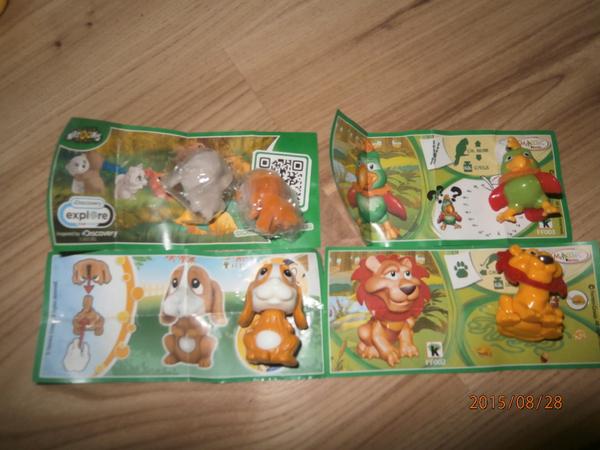 Uz pevnych par rokov nas drzi zbieranie figuriek z Kindervajicok. Poslednu dobu je to strasne. Kedze si vyberam tie tazsie vajicka, nejako sa nam namnozili niektore postavicky, napr. zo serie Atronautov mame asi 3 korytnacky, 3 medvedov a ziadneho papagaja. Zo starsej serie Natoon mame napr. troch hrochov. Ma zaujem niekto povymienat?