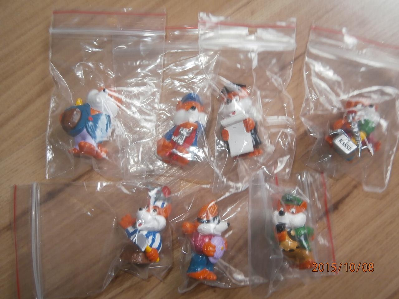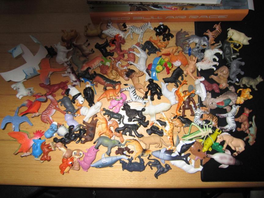 Uz pevnych par rokov nas drzi zbieranie figuriek z Kindervajicok. Poslednu dobu je to strasne. Kedze si vyberam tie tazsie vajicka, nejako sa nam namnozili niektore postavicky, napr. zo serie Atronautov mame asi 3 korytnacky, 3 medvedov a ziadneho papagaja. Zo starsej serie Natoon mame napr. troch hrochov. Ma zaujem niekto povymienat?