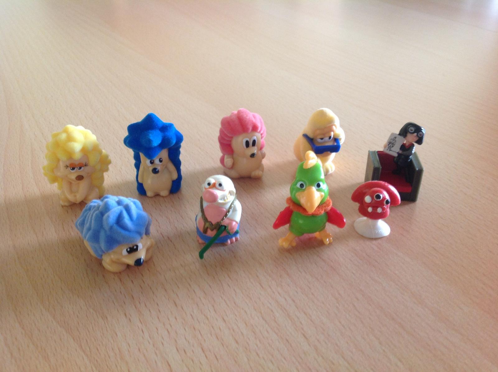 Uz pevnych par rokov nas drzi zbieranie figuriek z Kindervajicok. Poslednu dobu je to strasne. Kedze si vyberam tie tazsie vajicka, nejako sa nam namnozili niektore postavicky, napr. zo serie Atronautov mame asi 3 korytnacky, 3 medvedov a ziadneho papagaja. Zo starsej serie Natoon mame napr. troch hrochov. Ma zaujem niekto povymienat?