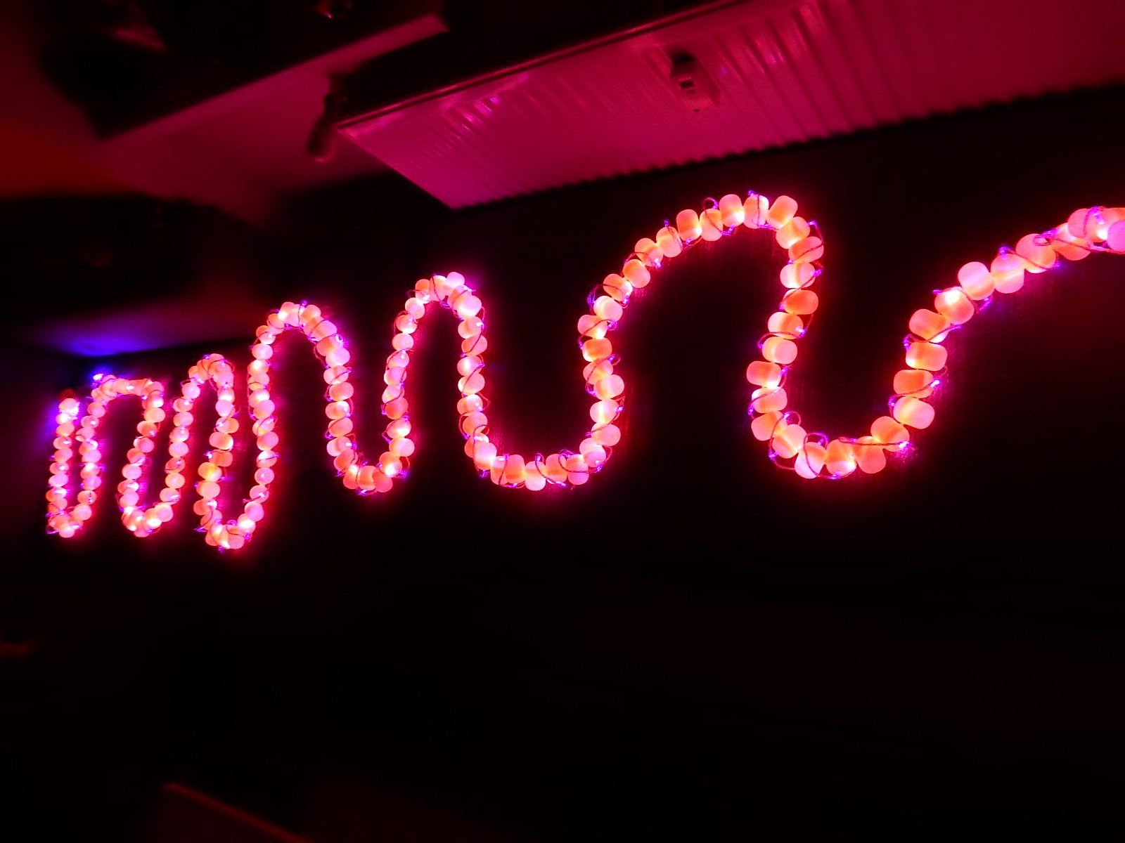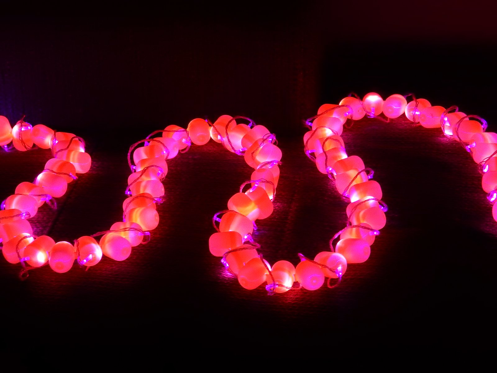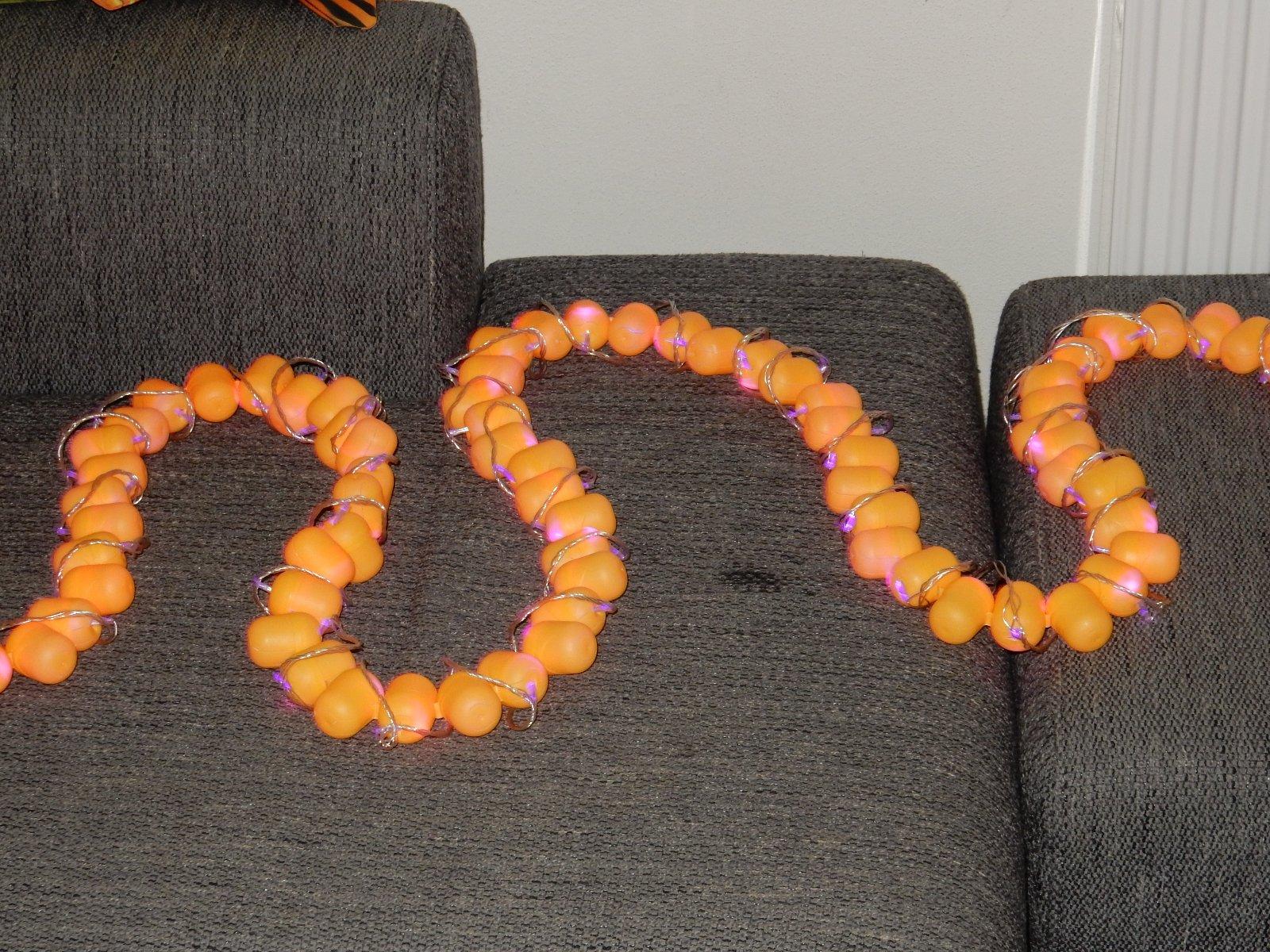 na pripravu sme pouzili: 200 skrupiniek z kinderiek a vianocnu retaz s 200 led ziarovkami z Ciny.