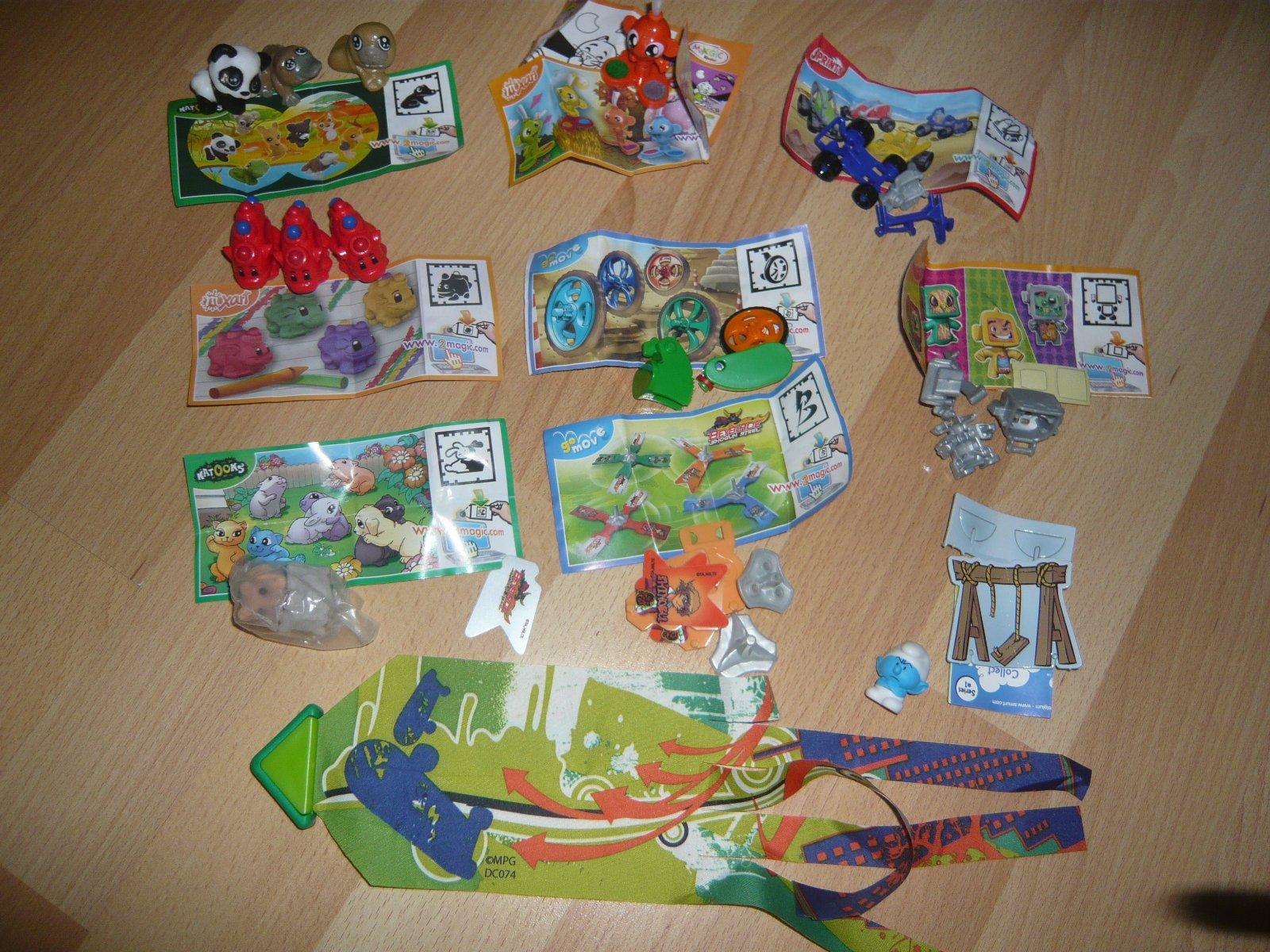 Uz pevnych par rokov nas drzi zbieranie figuriek z Kindervajicok. Poslednu dobu je to strasne. Kedze si vyberam tie tazsie vajicka, nejako sa nam namnozili niektore postavicky, napr. zo serie Atronautov mame asi 3 korytnacky, 3 medvedov a ziadneho papagaja. Zo starsej serie Natoon mame napr. troch hrochov. Ma zaujem niekto povymienat?